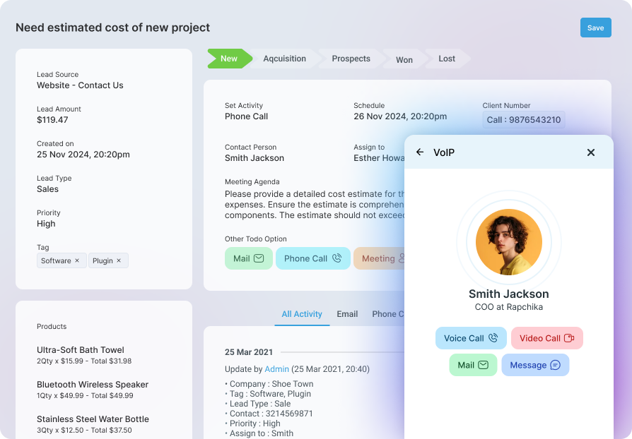 Streamline your business operations, track every lead with precision, and build lasting customer relationships — all within one powerful and intuitive CRM platform. Simplify your workflow, boost team productivity, and turn every interaction into an opportunity for growth.